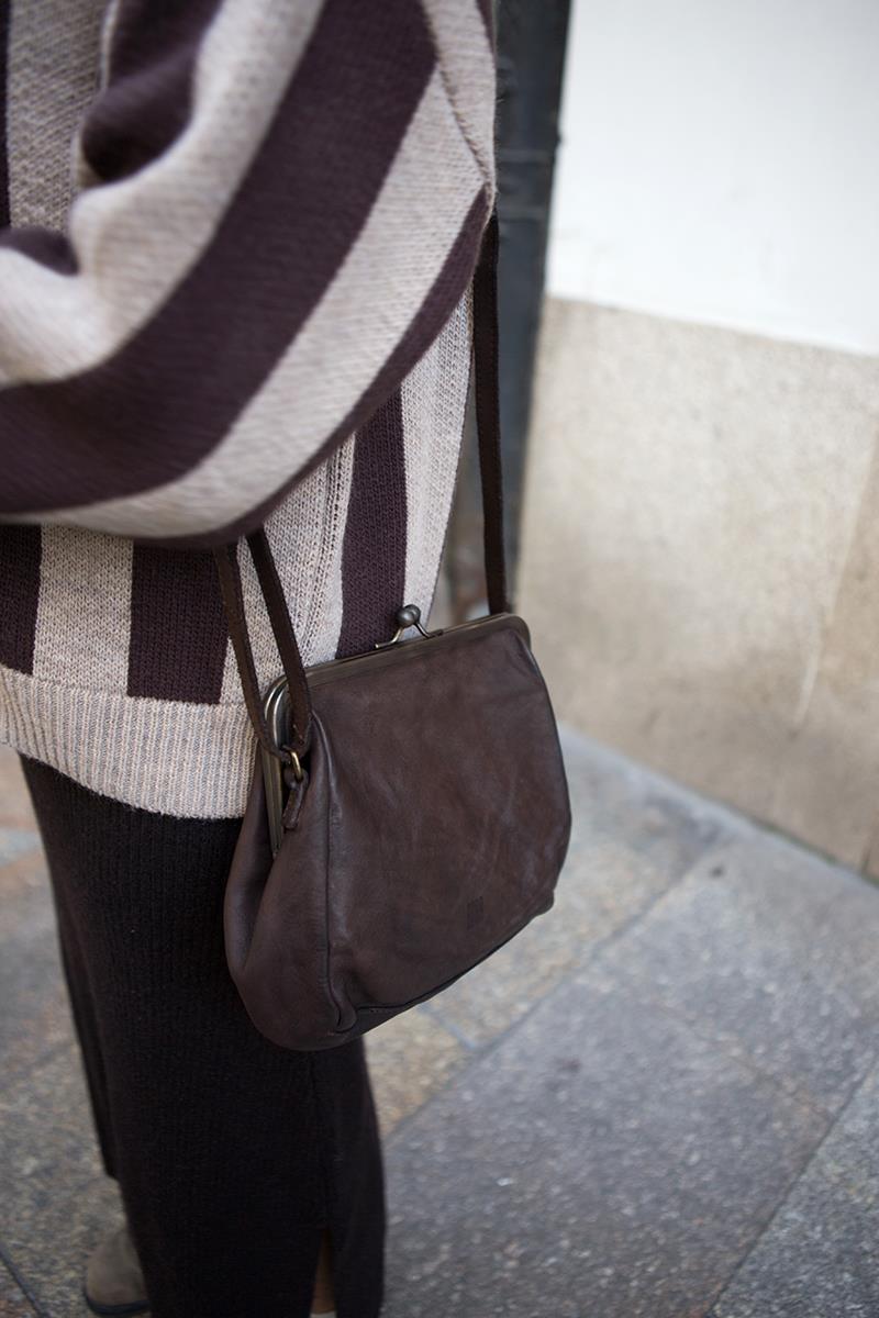 Un bolso de piel con aires vintage muy estiloso en piel marrón oscura. Una pieza perfecta para diario, si sólo quieres llevar las cosas esenciales. Es muy ligero y cómodo. Piel de vacuno lavada, que resulta suave, flexible y muy agradable al tacto. El asa se puede regular para que lo ajustes a la altura deseada. El interior está forrado con tela del mismo color y tiene un bolsillo de cremallera y otro abierto donde podrás llevar el móvil. Ten en cuenta que las pieles por su propia naturaleza pueden presentar ligeras imperfecciones, además el que recibas puede variar ligeramente debido a las tintadas.