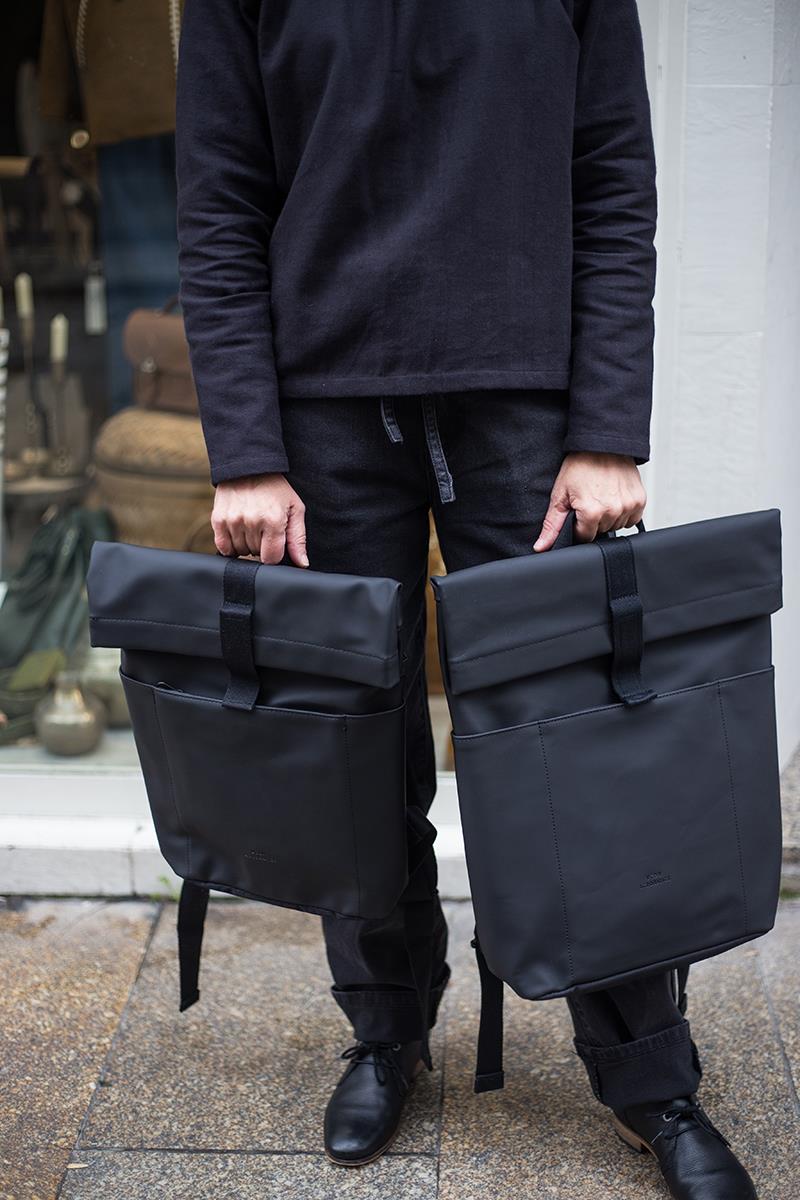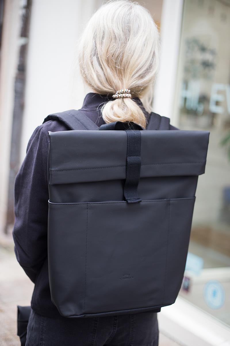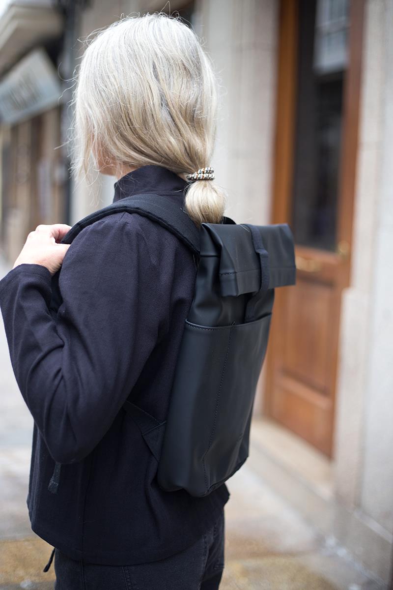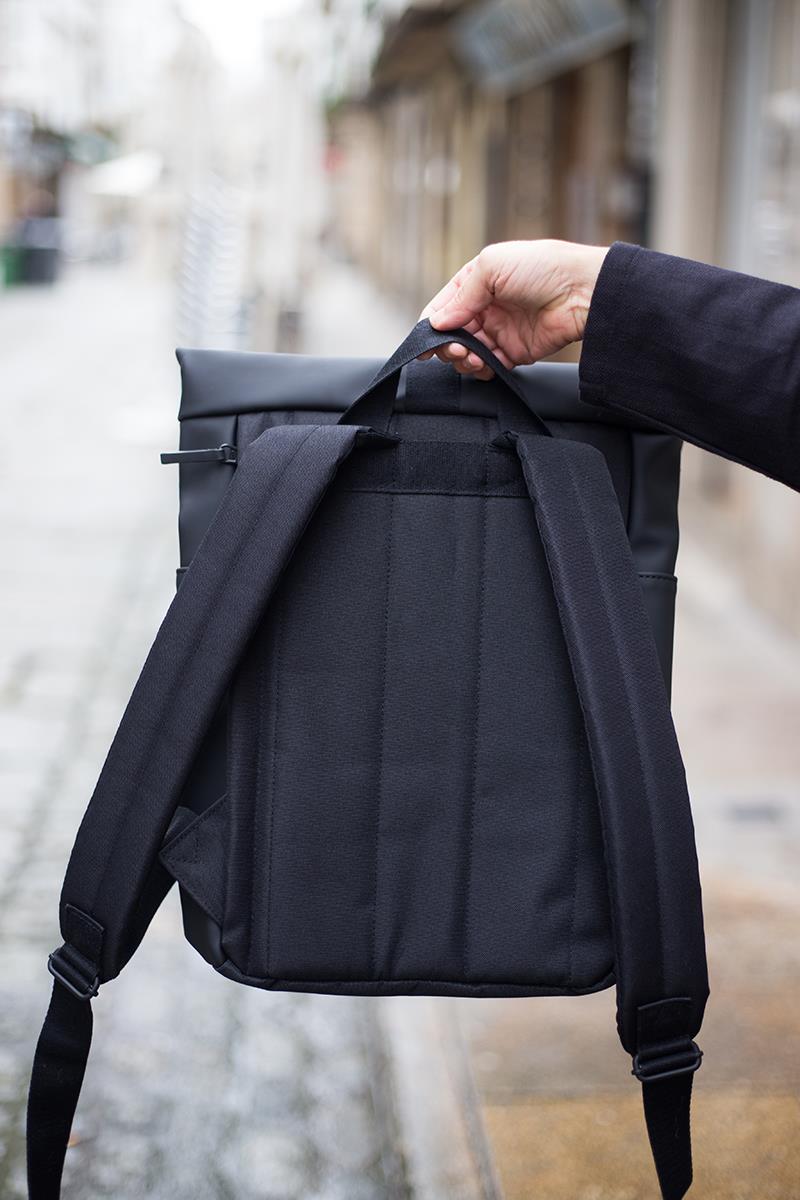 Una mochila de diseño minimalista, urbana, práctica y ligera, que además es impermeable. Cuenta con un práctico bolsillo exterior con cremallera y dos en los laterales. El interior tiene espacio suficiente para tus objetos esenciales, protegidos por una resistente cremallera sellada para que no entre el agua. Y con su diseño limpio añade ese toque especial a tus desplazamientos diarios, ya sea en bicicleta, en autobús o caminando. Tiene una apertura lateral de cremallera para poder acceder con facilidad al interior, donde además lleva un mosquetón con cinta para llevar tus llaves y una sujeción elástica para transportar una botella. Con el tamaño perfecto para tu MacBook de 16″, que irá protegido gracias al acolchado interior.