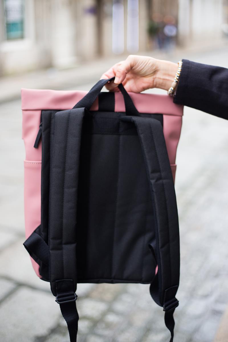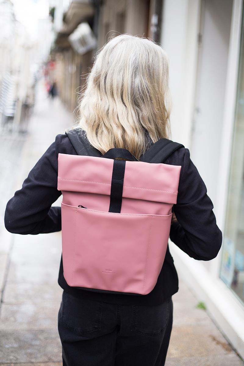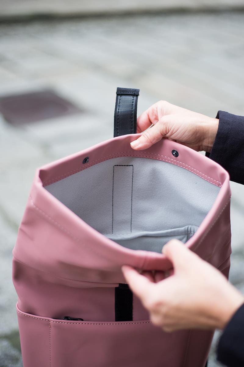 Una mochila de diseño minimalista, urbana, práctica y ligera, que además es impermeable. Cuenta con un práctico bolsillo exterior con cremallera y dos en los laterales. El interior tiene espacio suficiente para tus objetos esenciales, protegidos por una resistente cremallera sellada para que no entre el agua. Y con su diseño limpio añade ese toque especial a tus desplazamientos diarios, ya sea en bicicleta, en autobús o caminando. Tiene una apertura lateral de cremallera para poder acceder con facilidad al interior, donde además lleva un mosquetón con cinta para llevar tus llaves y una sujeción elástica para transportar una botella. Con el tamaño perfecto para tu MacBook de 13″, que irá protegido gracias al acolchado interior.