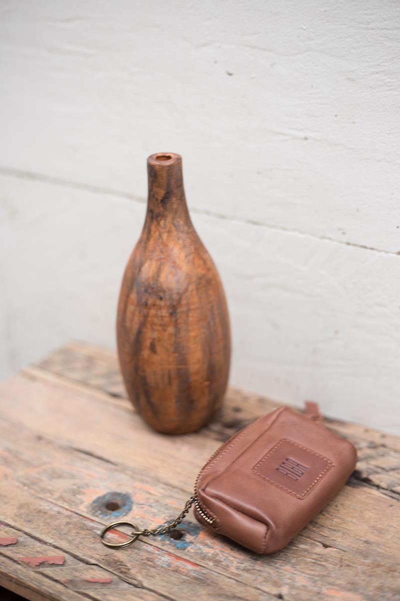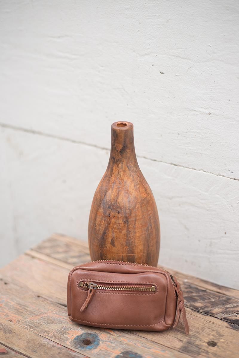Un monedero pequeño y muy funcional. Perfecto para llevar tus tarjetas y el dinero en efectivo, además incluye un aro para llevar las llaves en el interior. Con cierre de cremallera y un tirador para mayor comodidad. Es de piel color cuero y no tiene forro, ni divisiones en el interior. En la parte exterior tiene un bolsillo con cremallera.