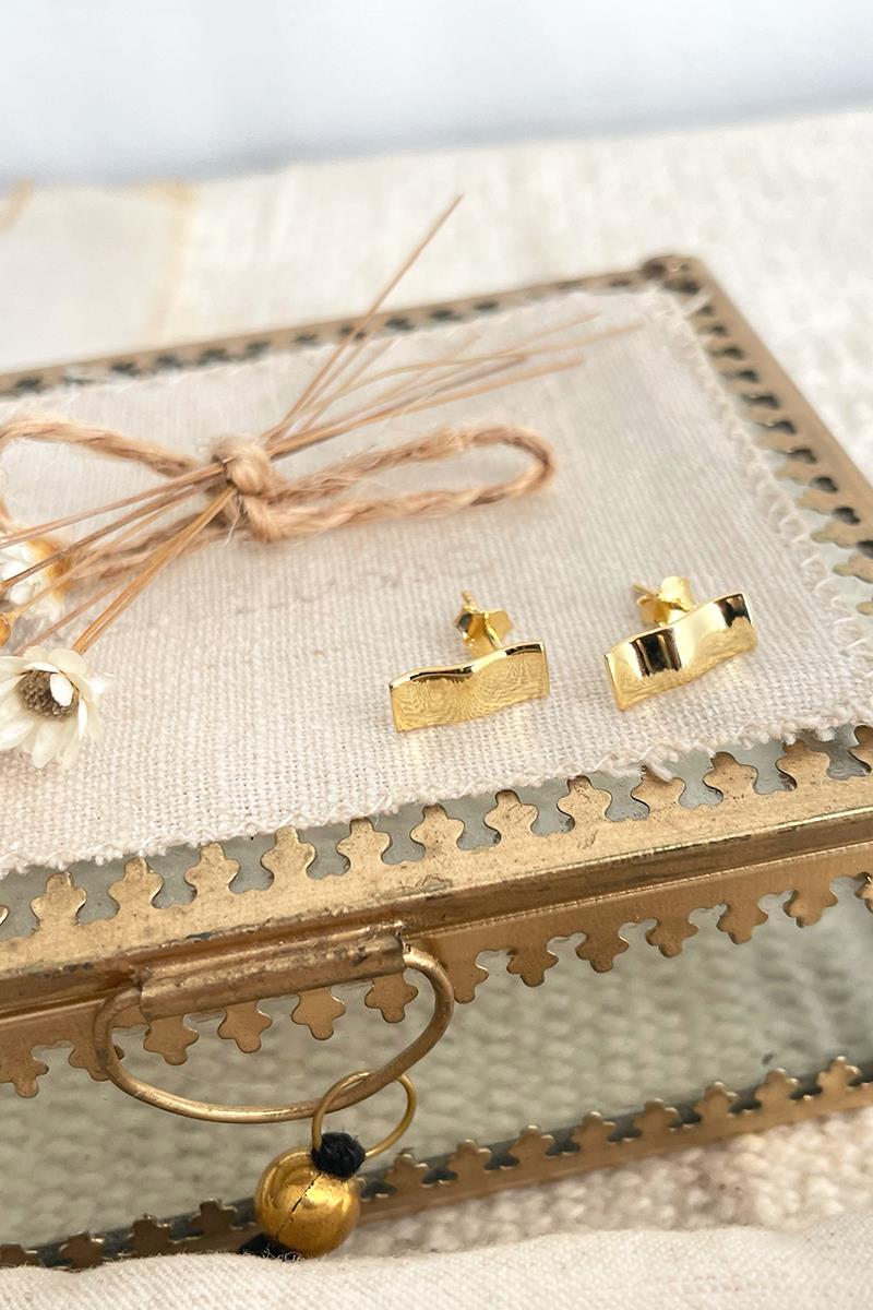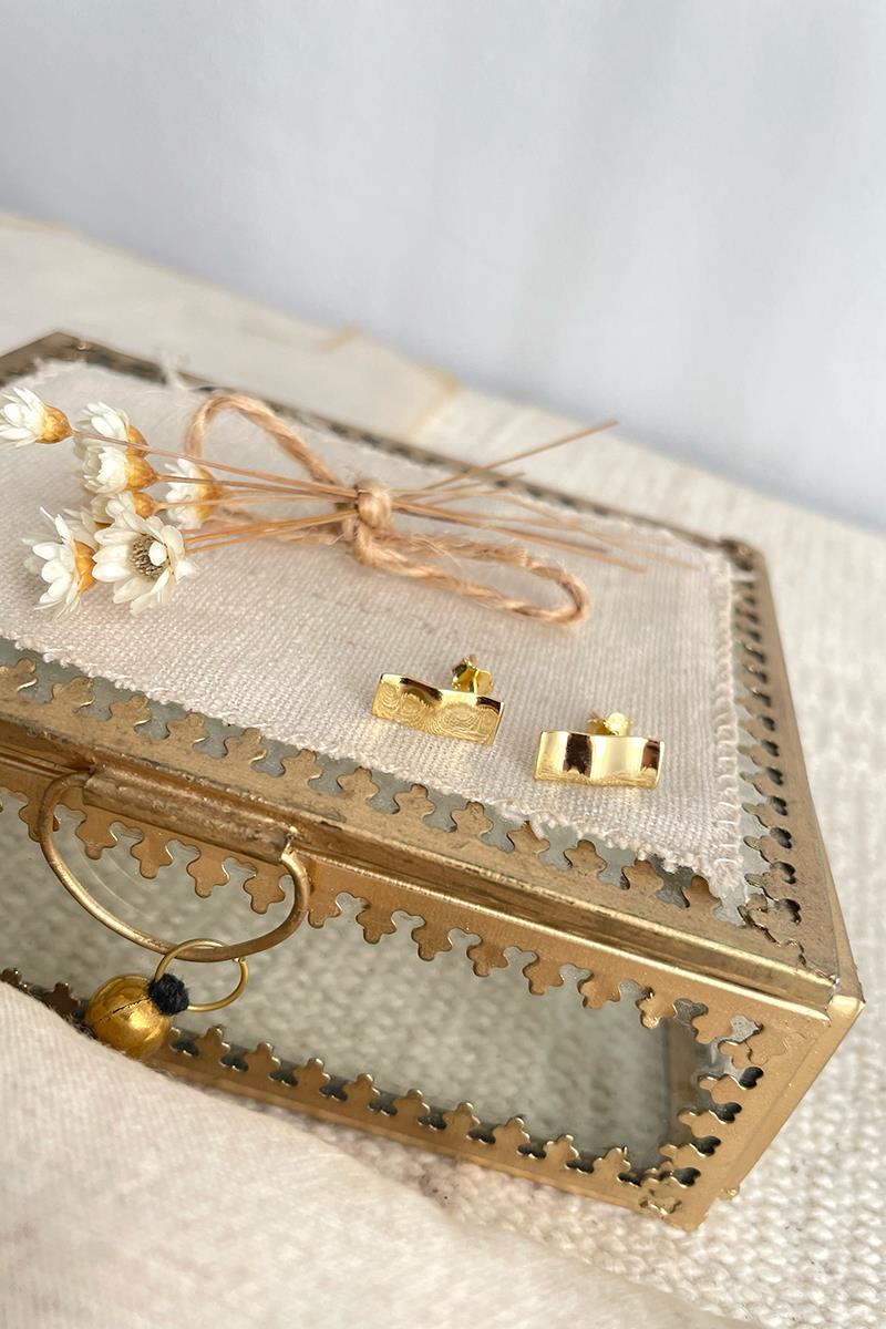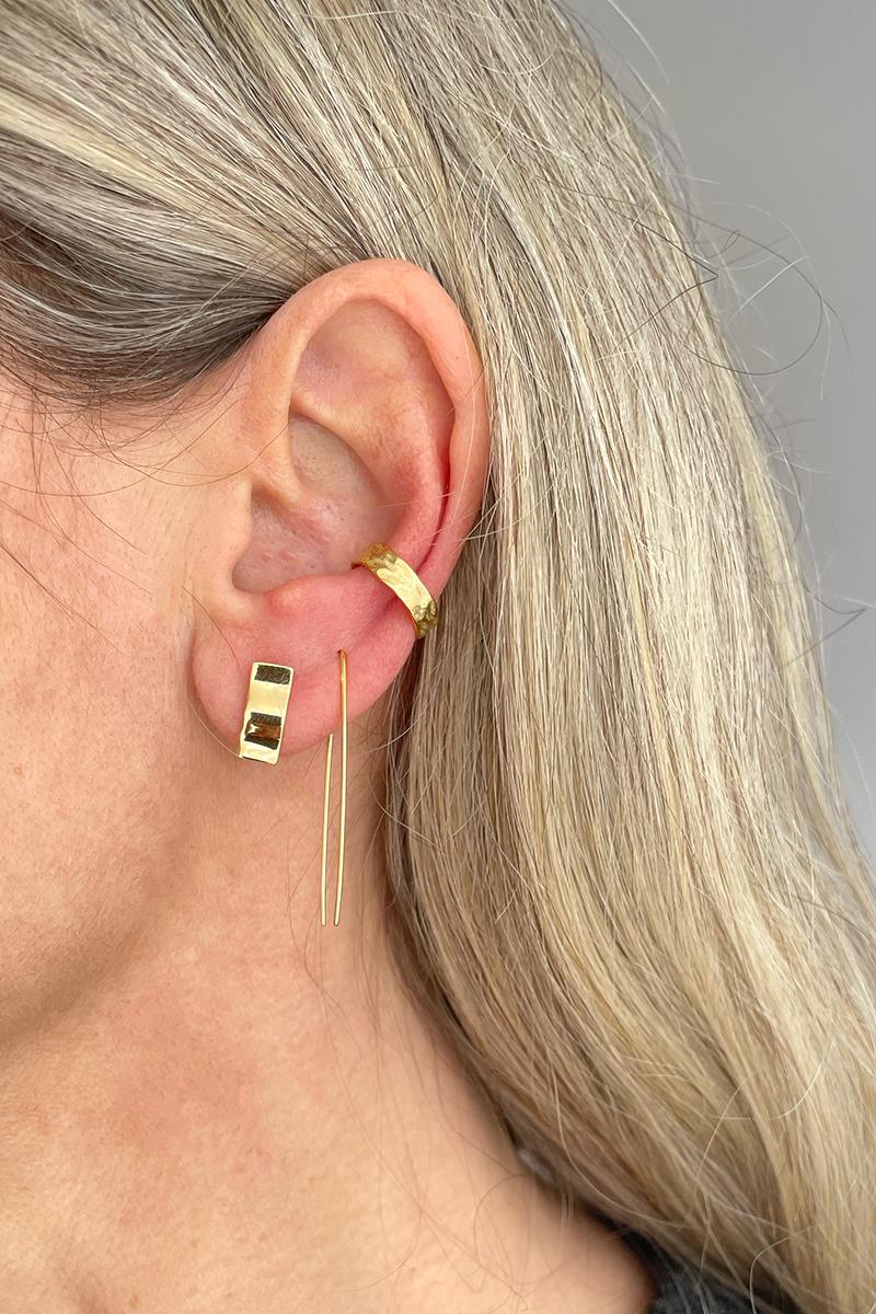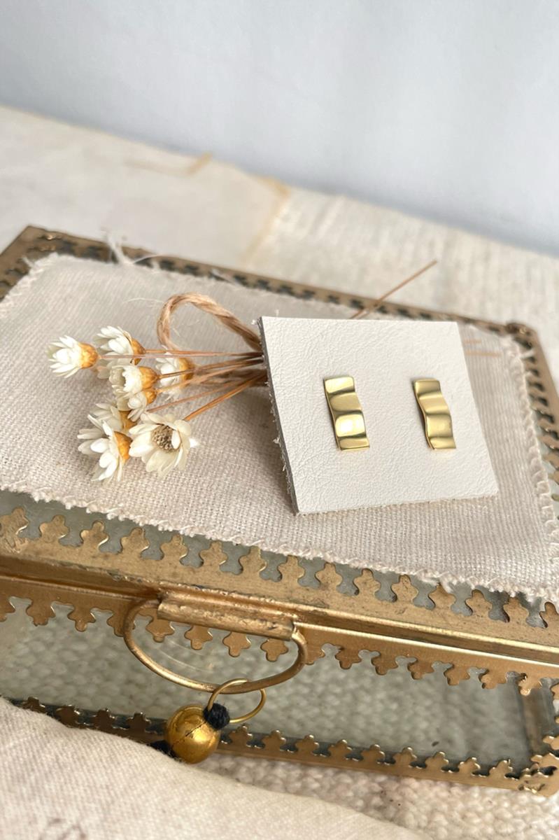 Pendientes con forma de placa con efecto ligeramente arrugado. Muy sencillos y vistosos. Su tamaño los hace perfectos para el día a día. Con cierre tradicional de presilla. Son de plata con baño de oro.