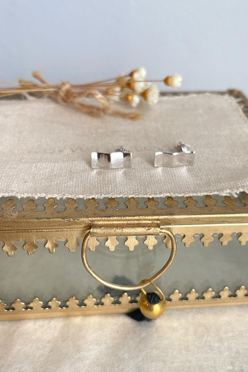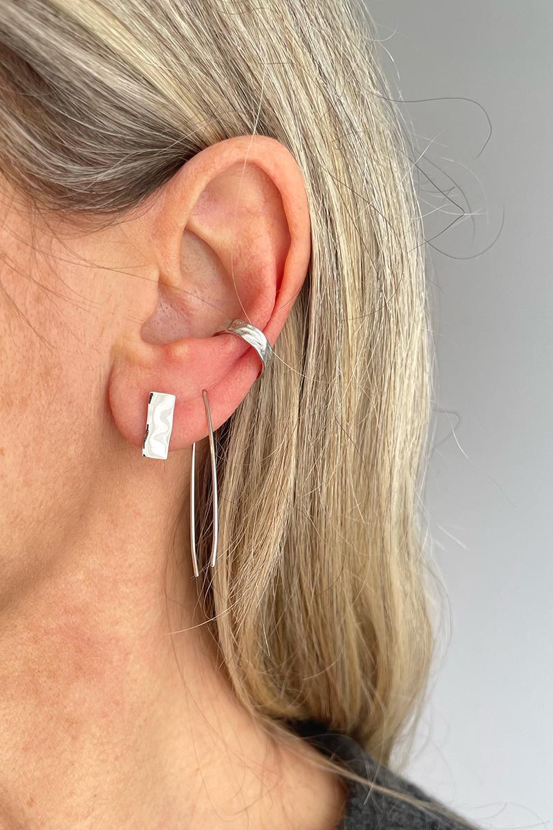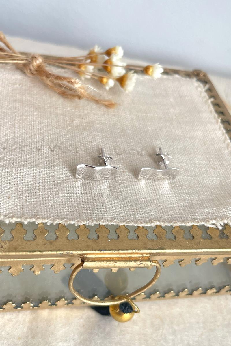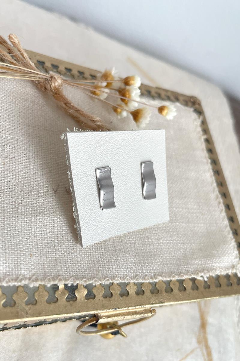 Pendientes con forma de placa con efecto ligeramente arrugado. Muy sencillos y vistosos. Su tamaño los hace perfectos para el día a día. Con cierre tradicional de presilla. Son de plata rodiada.