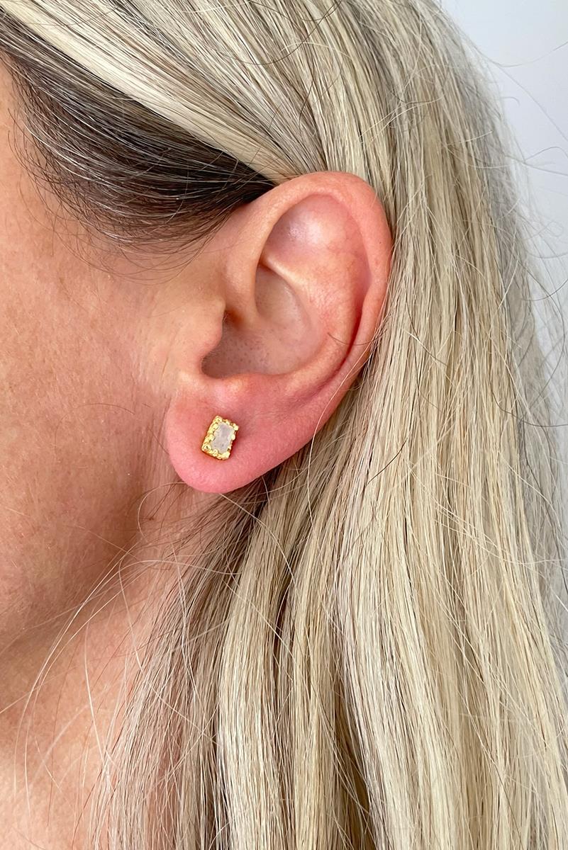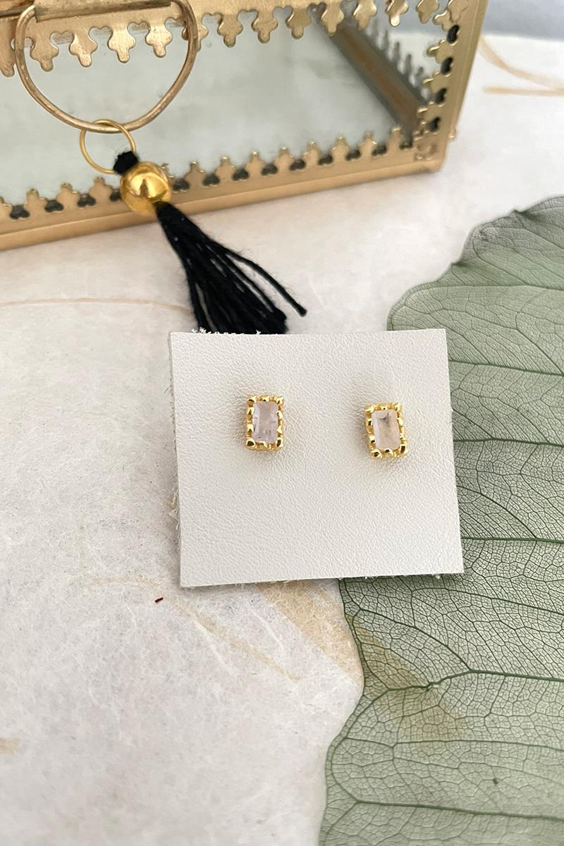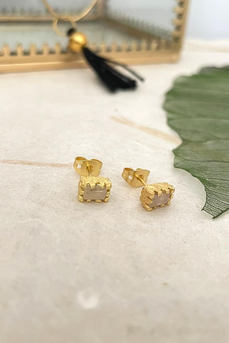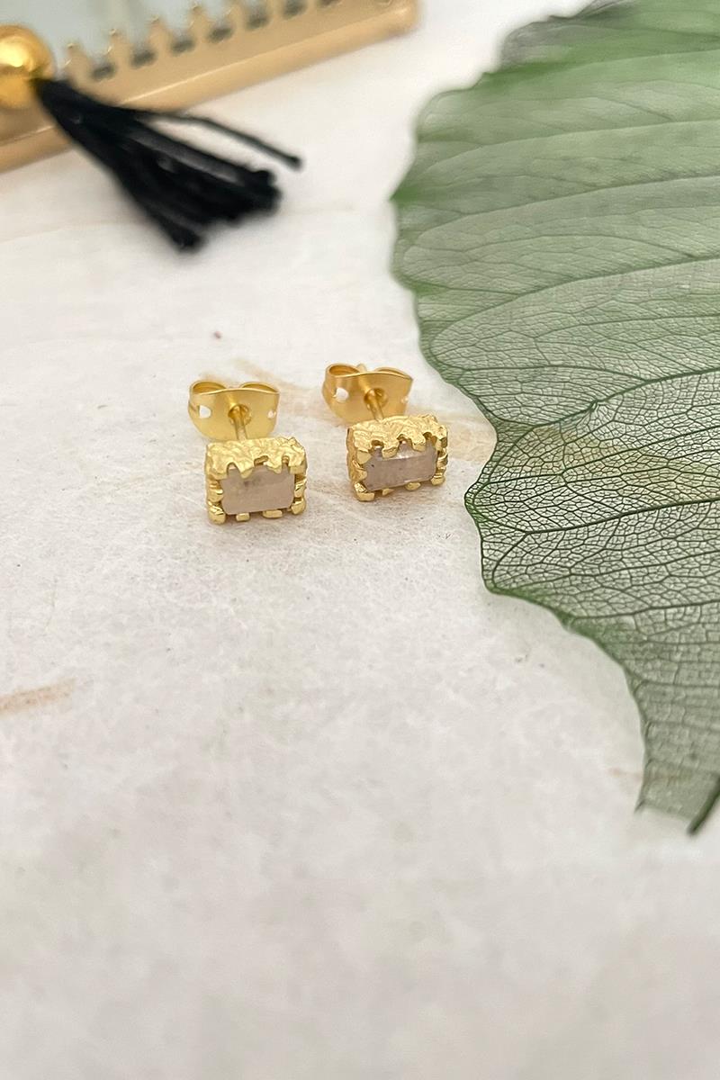 Unos pendientes pequeños y sencillos pero muy vistosos. Con piezas de piedra luna engarzadas. Tienen un diseño muy favorecedor que los hace perfectos para el día a día, sin pasar desapercibidos. Son unos pendientes muy ligeros. Con cierre tradicional de presilla. Hechos de latón, libre de níquel, chapado en oro y con un lacado para mayor duración. Ten en cuenta que se estos pendientes se han hecho de manera artesanal y con materiales extraídos de la naturaleza, por eso los que recibas pueden ser ligeramente diferentes, cada pieza sea única. Largo 6 mm.