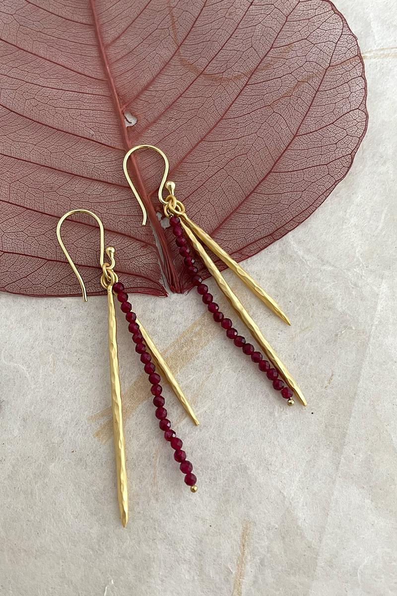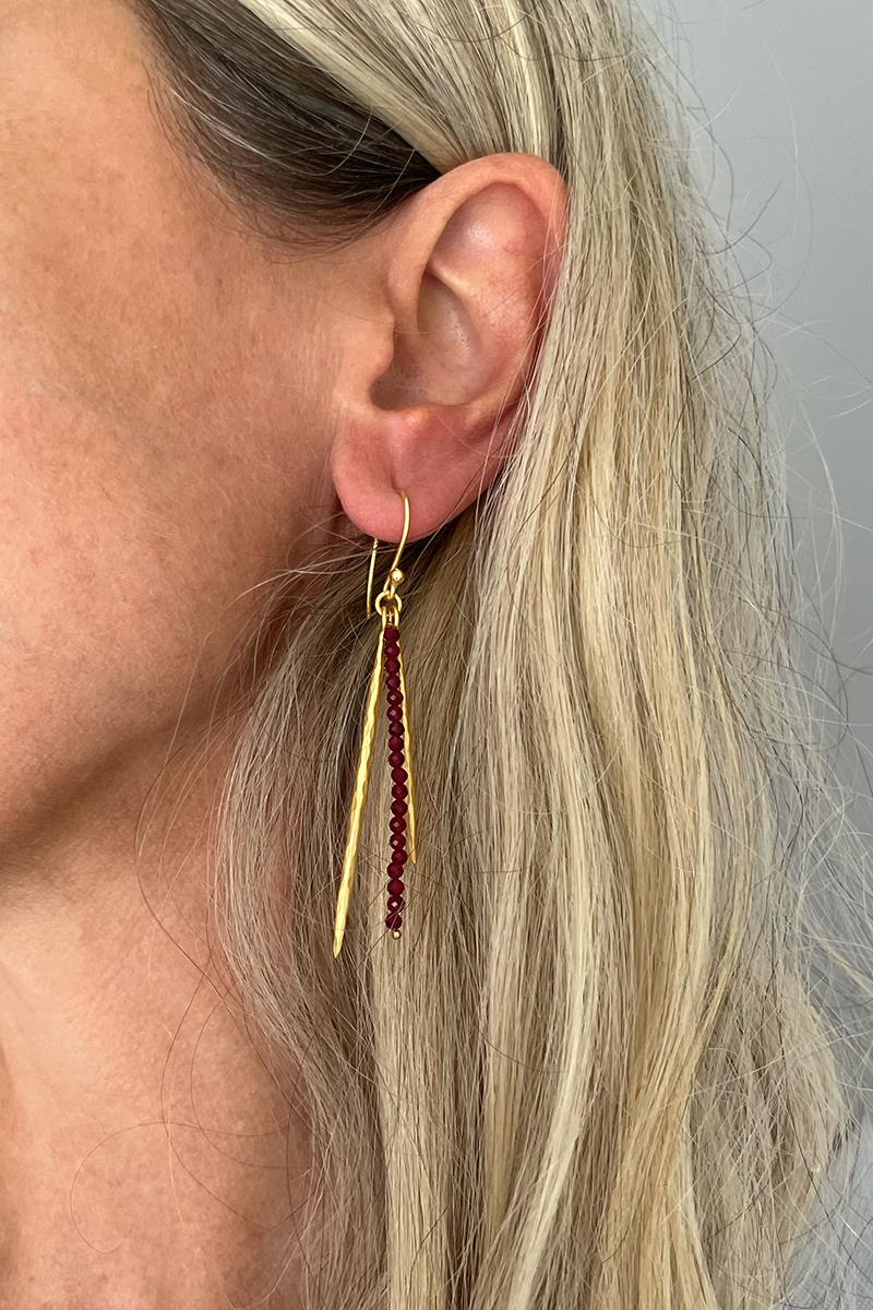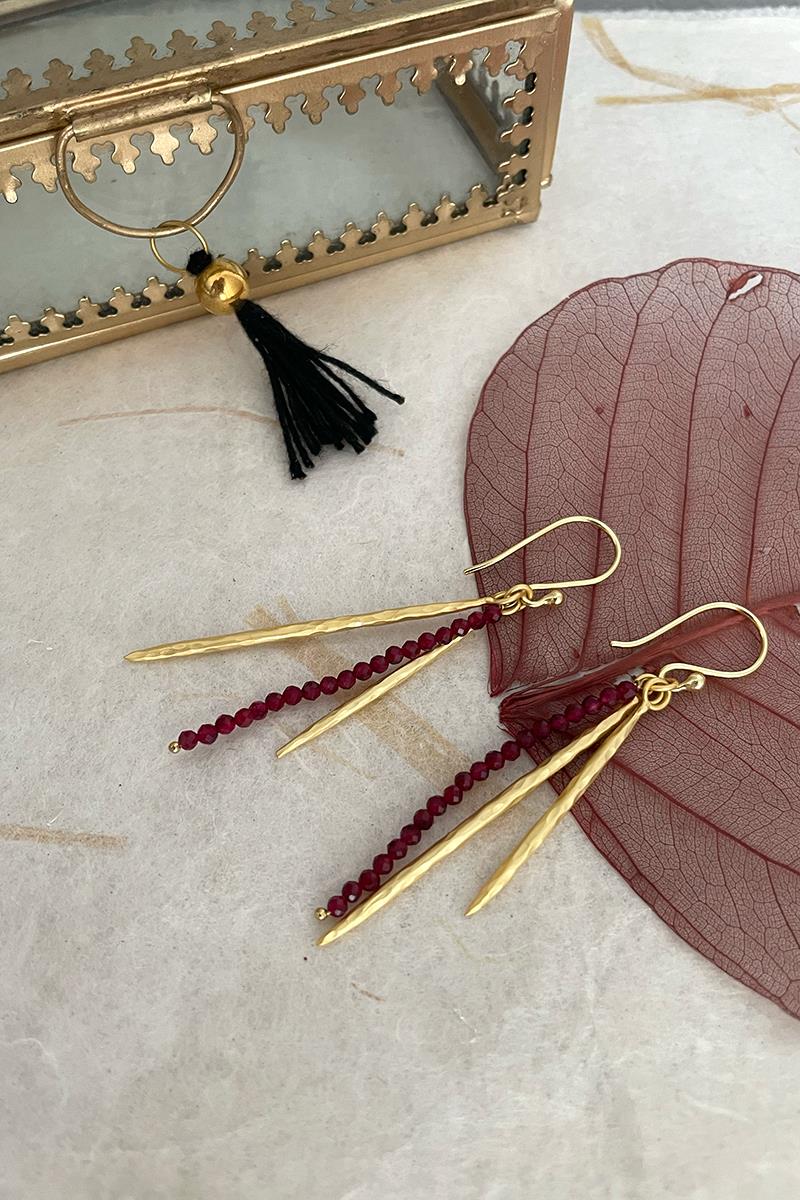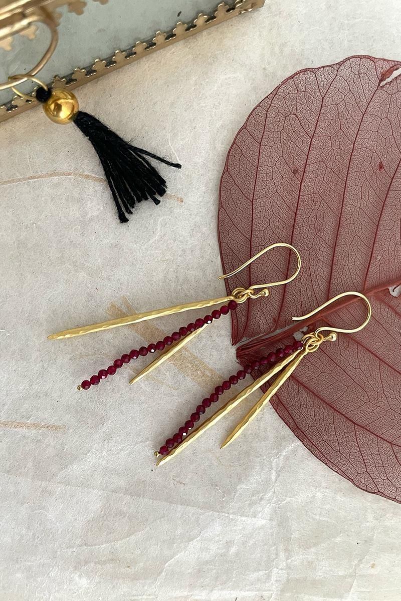 Pendientes largos con una tira de pequeñas turmalinas. Muy elegantes y originales, son perfectos para el día a día si eres de pendientes largos o también para una ocasión especial. Son unos pendientes muy ligeros. Con cierre de gancho. Hechos de latón, libre de níquel y chapado en oro con acabado mate.
